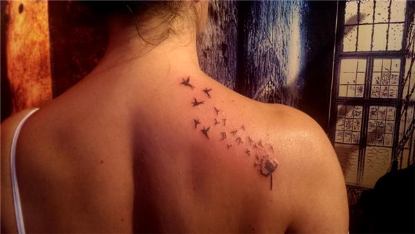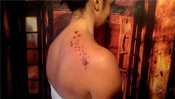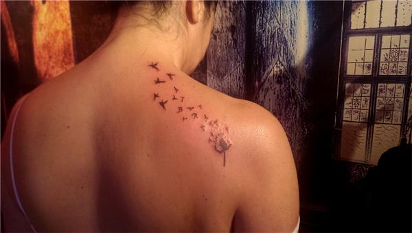 Karahindiba Harfler ve Kuşlar Dövmesi / Dandelion Birds Letters Tattoo, karahindiba dövmesi, uçan kuşlar, kara hindibağ çizim, kara hindibağ dövmesi, kuşlar, harfler, isim, ali baran, dandelion birds names words tattoos