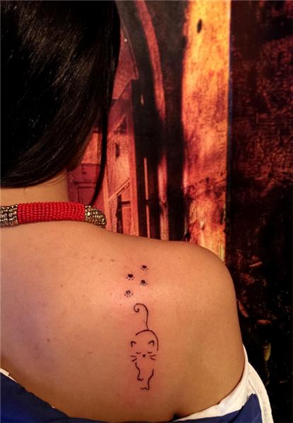 Cat walk paw tattoos, Çizgisel Omuz Dövmesi, Kedi Dövmeleri, Kedi ve Pati Dövmesi
