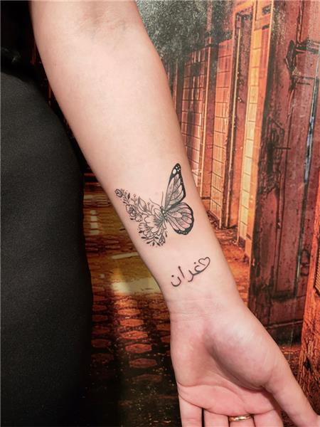 Kelebek Çiçekler ve Yazı Dövmesi / Butterfly Flowers and Arabic Tattoo