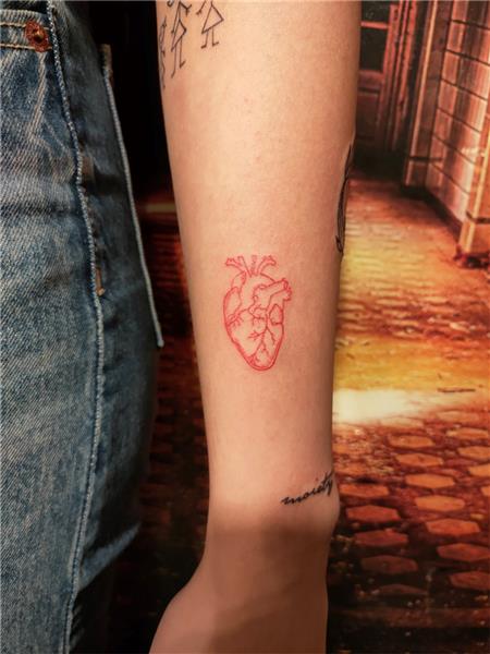 Kırımızı Minimal Gerçek Kalp Dövmesi / Minimal Red Heart Tattoo