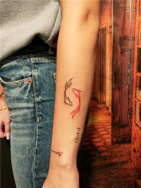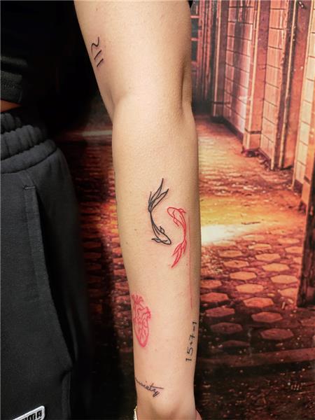 Kırmızı Siyah Minimal Koi Balığı Dövmesi / Red and Black Minimal Koi Fish Tattoos