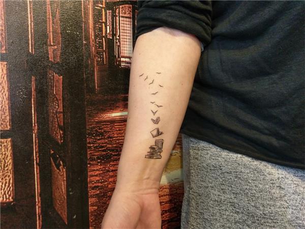 Kitaplar ve Uçuşan Kuşlar Dövmesi / Books and Flying Birds Tattoo