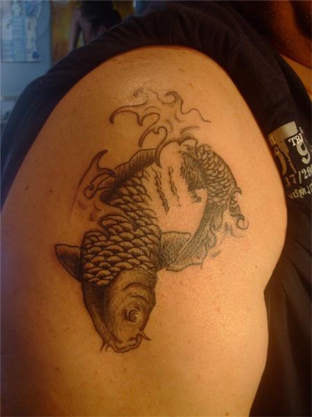 Koi Balığı Dövmeleri / Koi Fish Tattoos, Omuz Dövmeleri, Balık Dövmeleri, Siyah Gölgeli Dövmeler