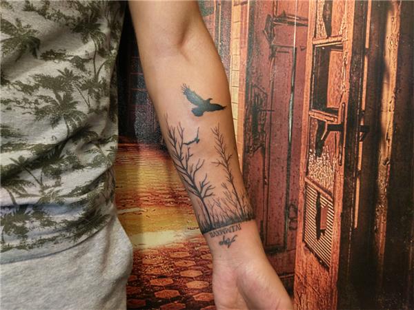Kol Üzerine Ağaçlar Orman ve Kartal Dövmesi / Forest Birds Trees Eagles Arm Tattoo