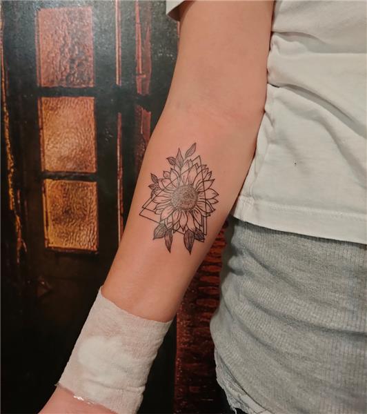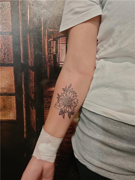 Kol Üzerine Üçgen İçinde Ay Çiçeği Dövmesi / Sun Flower and Triangle Tattoo