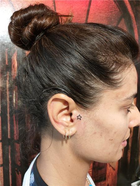 Kulak Yanak Yüz Tragus Yıldız Dövmesi, Star Tattoo on Tragus