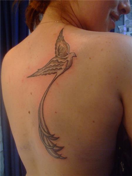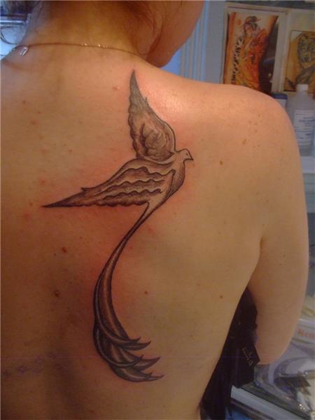 Kuş Dövmeleri / Bird Tattoos, Kuş Güvercin Uzun Kuyruklu Kuş Dövmesi, Sırt Dövmeleri, Omuz Dövmeleri, Anka Kuşu Dövmeleri