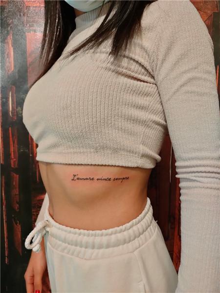 L'amore vince sempre Tattoo, Aşk her zaman kazanız Yazı Dövmesi, Yazı Dövmeleri, Bel Kabura Üstü Vücut Yazı Dövmeleri, Güzel Sözler El Yazısı Dövme
