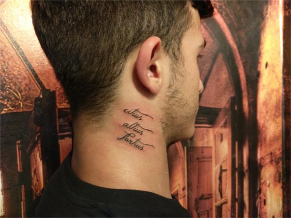 Latince daha hızlı, daha yukarı, daha güçlü dövme, Citius, Altius, Fortius Latin for Faster, Higher, Stronger, Latince Deyişler Deyimler Dövmesi, Olimpik Mottoi Olimpiyat Sözü Dövme, Latin Tattoo, Boyun Dövmeleri, Boyuna Yazı Dövmeleri, Neck Tattoos, Sporcu Dövmeleri