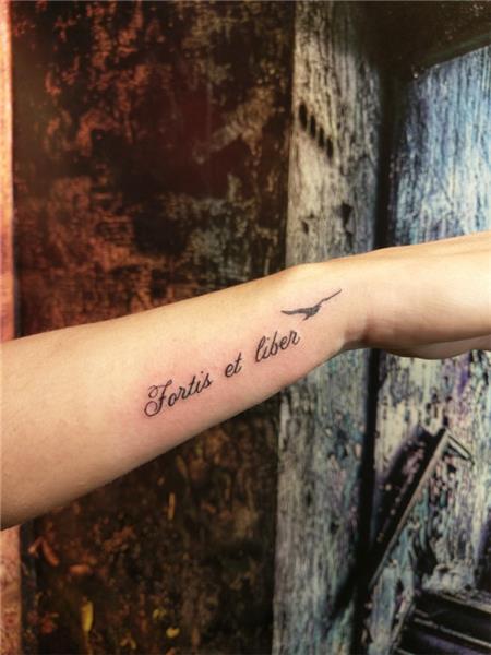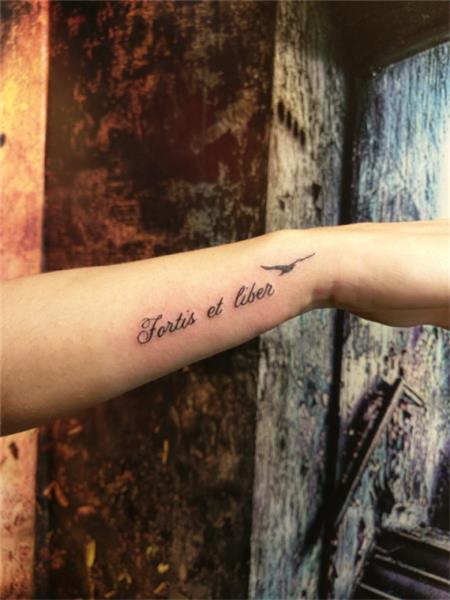 Latince Güçlü ve Özgür Uçan Kuş Dövmesi / Fortis et Liber Flying Bird Tattoo, Fortis et liber latince deyim deyiş güçlü ve özgür anlamında dövme, Latin Tattoo, Bilek dövmeleri, el yazısı dövmeler, El Bileğine Yazı Dövmesi, Bileğe Dövme