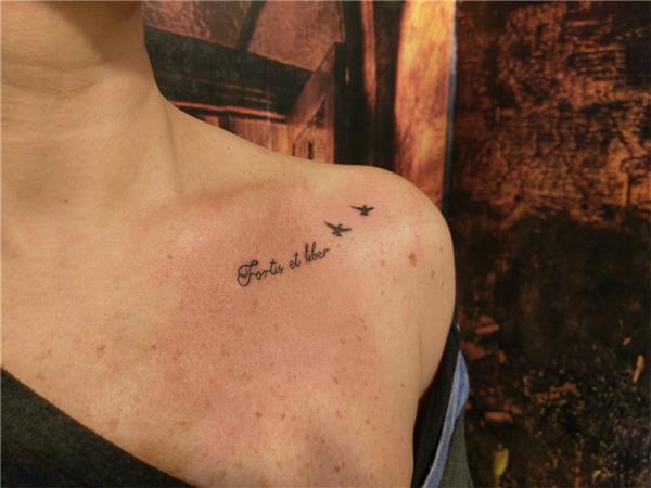 Latince Güçlü ve Özgür Uçan Kuşlar Dövmesi, Fortis et Liber Flying Birds Tattoo, Fortis et liber latince deyim deyiş güçlü ve özgür anlamında dövme, Latin Tattoo, Yazı Dövmesi, Köprücük Kemiği Altına Yazı Dövmesi