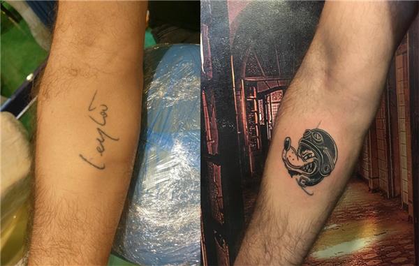 Leyla İsim Dövmesi Motorsikletçi Kurt Dövmesi ile Kapatma Çalışması / Name Tattoo Cover Up With Wolf Biker Tattoo