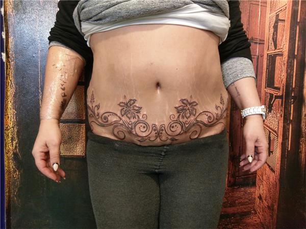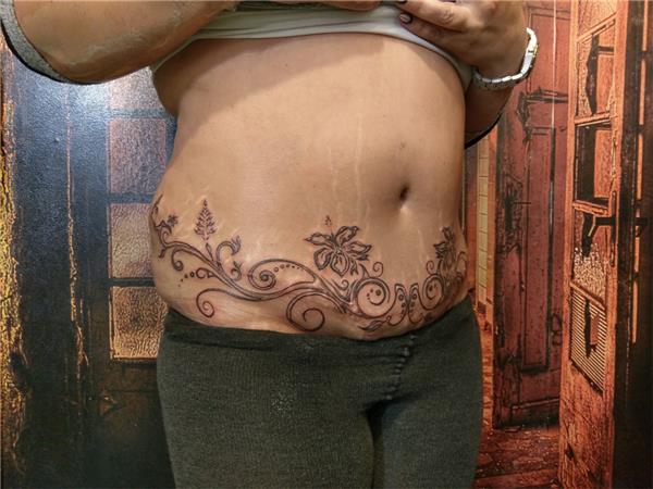 Lipoabdominoplasti Karın Germe Ameliyatı Sonrası Dövme ile İz Kapatma Tıbbi Kamuflaj, Karın Bölgesi, Çatlak Kapatma Dövmesi, Çiçekler Sarmaşık Dövmeleri ile Yara Kesik Ameliyat İzi Çatlak Kapatma Çalışması, Lipoabdominoplasti Scar Cover Up Tattoo, Dövme ile Abdominoplasti Karın Germe Ameliyatı İzi Kapatma, Ameliyat izi üzerine dövme, Karın Göbek Dövmesi, Çatlak İzi Kapatma Dövmesi