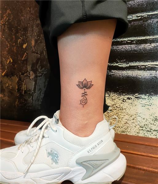 Lotus Unalome Sude Güneşi Dövmesi, Lotus Unalome Sun Tattoo, Ayak Bileği Dövmeleri, Lotus Dövmeleri, Lotus Tattoos