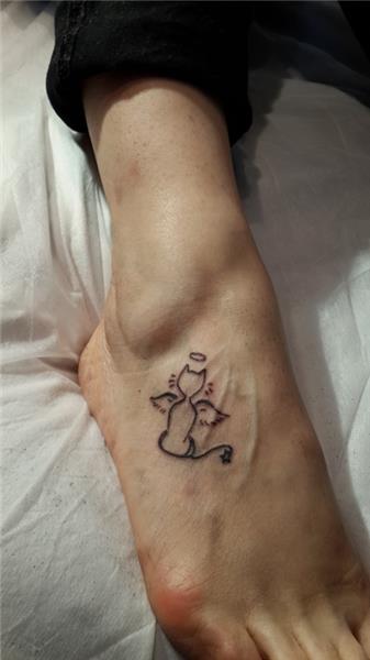 Melek Kedi Dövmesi / Angel Cat Tattoo, Kedicik Dövmeleri, Ayak Dövmesi, Foot Tattoos, Şirin Güzel Minik Kedi Dövmeleri