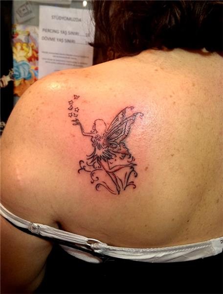 dövmeliyim, melek dövmesi, peri dövmesi, angel tattoo, fairy tattoo, stars butterflies tattoo, yıldızlar ve kelebekler dövmesi, omuz dövmeleri, omuza melek peri kelebek dövmesi