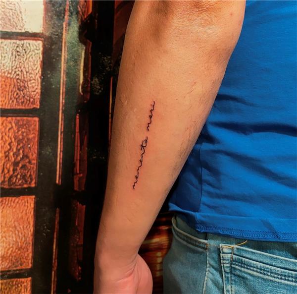 Memento Mori Yazı Dövmesi, Memento Mori Tattoo, Yazı Dövmeleri, Latince Yazı Dövmesi, Fani Olduğunu Öleceğini Unutma Anlamında Yazı Dövmesi, Kol Üzerine El Yazısı Dövme, Latince Deyişler Deyimler Sözler