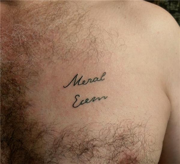 Meral Ecem İsim Dövmeleri / Name Tattoos, Göğüse İsim Dövmeleri, Eş ve Çocuk İsimleri Dövmesi, El Yazısı İsim Dövmeleri