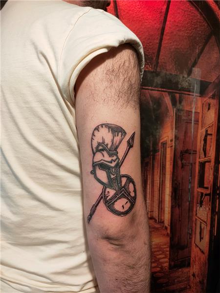 Miğfer Mızrak ve Kalkan Dövmesi, Helmet Spear and Shield Tattoo, Savaşçı Dövmesi, Gladyatör Dövmesi, Gladiator Tattoo, Warrior Tattoo