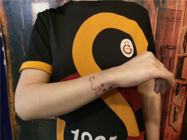 Minimal Çizgisel Kedi ve Patiler Dövmesi, Minimal Cat and Paw Tattoos, Kedi Dövmeleri, Pati Dövmeleri, Bilek Dövmeleri, Bileğe Kedi ve Pati Dövmesi, Animal Tattoos, Minik Küçük Kedi Dövmeleri