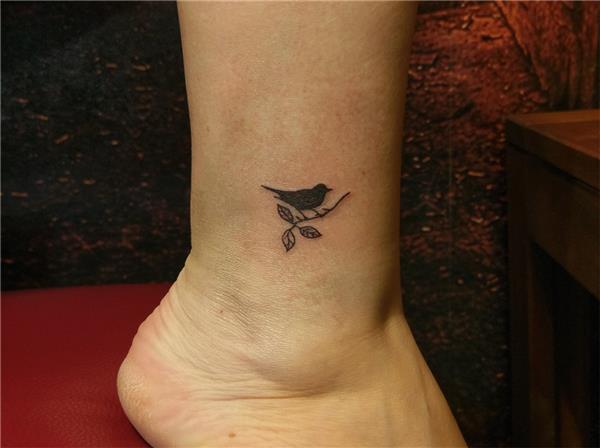 Minimal Dal Üzerinde Kuş Dövmesi / Minimal Bird on Branch Tattoo, Ayak Bileği Dövmeleri, Kuş Dövmeleri, Dal Yaprak Dövmeleri, Küçük Kuş Dövmesi, Bilek Dövmeleri, Bird Tattoos