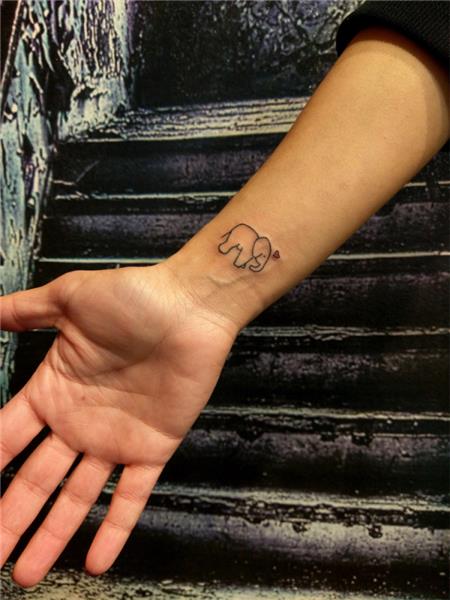 Minimal Fil ve Kalp Dövmesi / Minimal Elephant and Heart Tattoo, Fil Dövmeleri, Elephant Tattoos, Bilek Dövmeleri, Şirin Tatlı Küçük Dövmeler, Hayvan Dövmeleri, Kalp Dövmeleri, Heart Tattoos