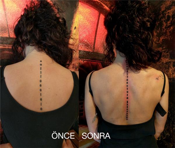 Mors Alfabesi Sırt Dövmesi Ekleme Düzeltme / Morse Code Back Tattoo Cover Up, Mors Alfabesi Harfler Dövmesi