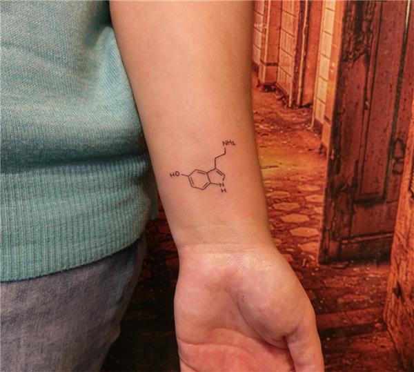 Mutluluk Hormonu Serotonin Dövmesi / Serotonin Tattoo, Serotonin kendimizi iyi hissetmemizi sağlayan mutluluk hissi veren nörotransmitterdir. Eksik olduğu zaman depresyon yorgunluk gibi belirtileri vardır. Bileğe Serotonin Dövmesi, Mutluluk Dövmesi, Arkadaş Dövmeleri