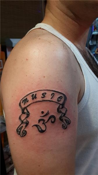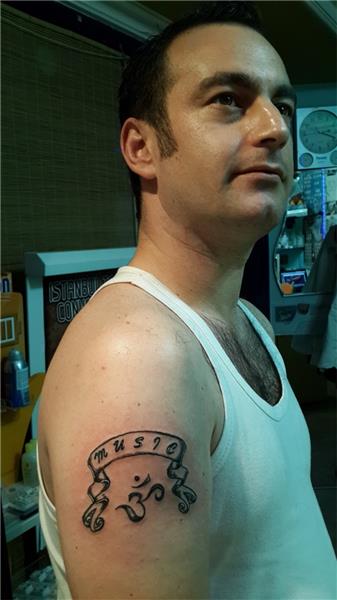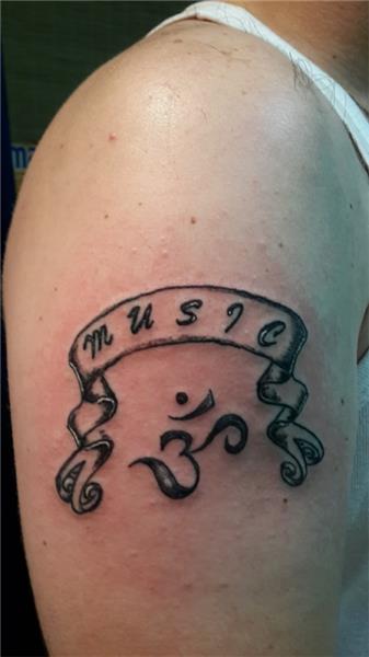Music Tattoo, Müzik Dövmesi, Banner Tattoo, Banner Flama Yazı Dövmesi, Müzik Sembol, Music Symbol, Sanskritçe Dövme