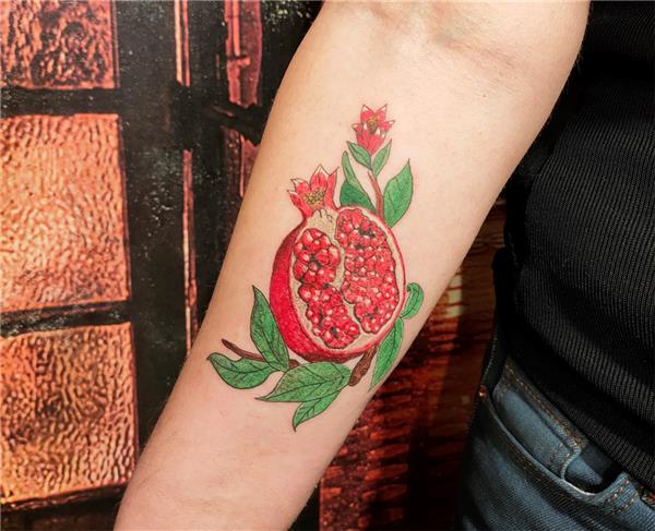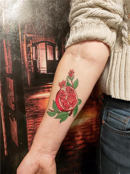 Nar Dövmesi, Pomegranate Tattoo, Meyve Dövmeleri, Çiçek Dövmeleri, Renkli Dövmeler, Nar Dövmeleri, Nar Çiçeği Dövmesi, Bitkisel Dövmeler, Kırmızı Dövmeler, Kol İçi Dövmesi