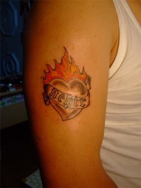 Nehir İsim Kalp ve Alevler Dövmesi / Name Heart Flame Tattoos