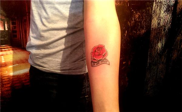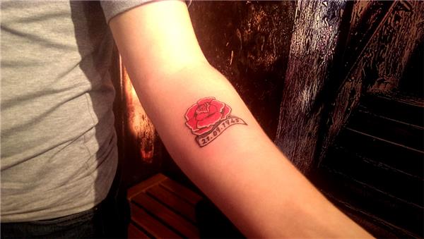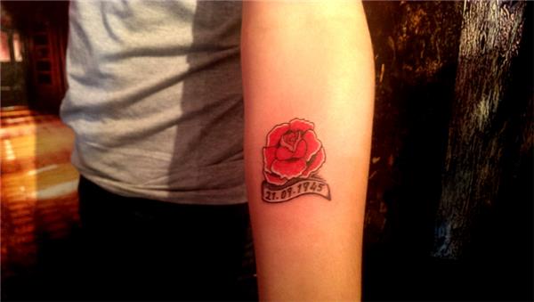 old school rose tattoo, Gül dövmesi, rose tattoo, Atilla Arcan doğum tarihi dövmesi, Atilla Arcan anısına dövme, Kol Dövmeleri, Gül Dövmeleri