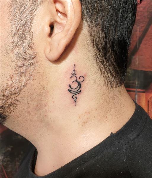 Om Nefes Değişim Sembolü Boyun Dövmesi, Om Change Breath Symbol Neck Tattoo, Om Sembolü Dövmesi, Budizm Sembolü Dövmeleri, Boyun Dövmeleri, Budism Symbols Tattoos