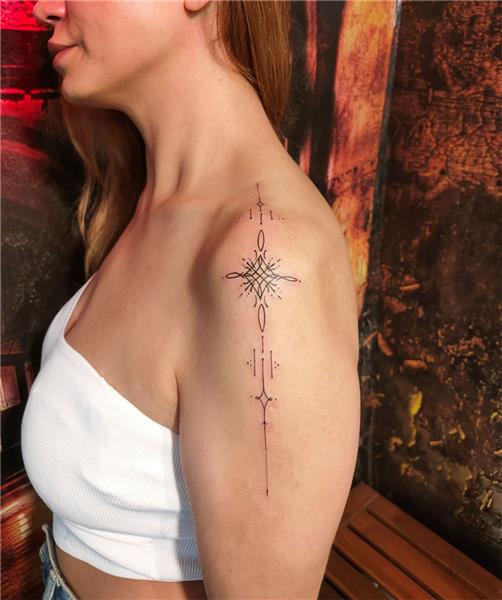 Omuza Çizgisel Sembol Dövmesi, Line Symbol Girl Tattoo, Omuz Dövmeleri, Kadın Dövmeleri, Estetik Dövmeler, Yıldız Dövmeleri