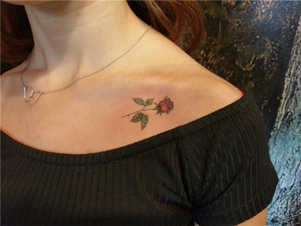 Omuza Minimal Renkli Gül Dövmesi, Rose Tattoo, Gül Dövmeleri, Rose Tattoos, Flower Tattoos, Çiçek Dövmeleri, Köprücük Kemiği Altına Küçük Gül Dövmesi, Renkli Çiçek Dövmeleri, Minimal Rose Tattoos