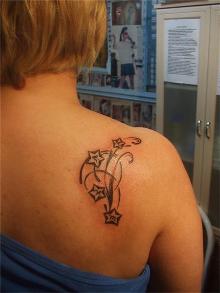 Omuza Yıldızlar ve İsim Baş Harfleri Dövmesi / Star and Letter Tattoos, Omuz Sırt Dövmeleri, Yıldız İçinde İsim Baş Harfleri Dövme