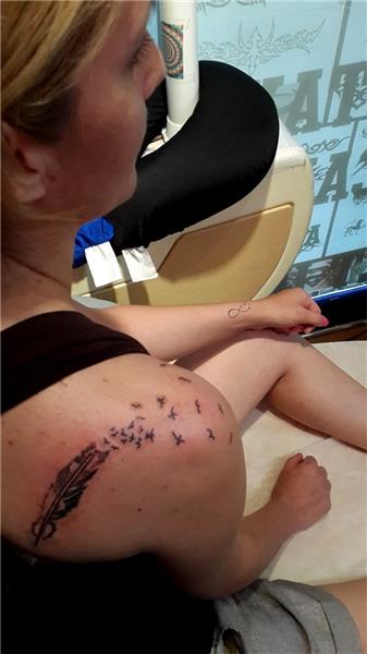 Omuzda Tüy ve Kuşlar Dövmesi / Feather and Birds Tattoo