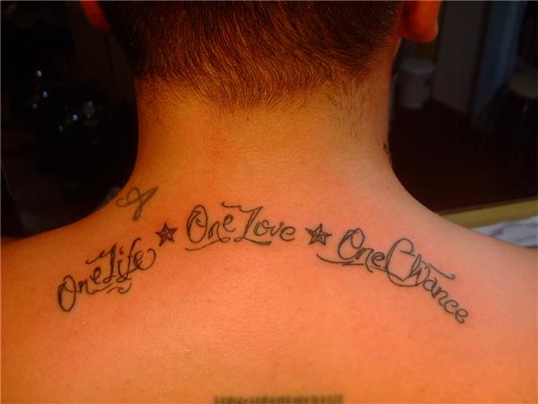 One Life One Love One Chance Yazı ve Yıldızlar Dövmesi, Tek Hayat Tek Aşk Tek Şans Dövmesi, Yazı Dövmeleri, Sırt Ense Dövmeleri, Dövme Fiyatları