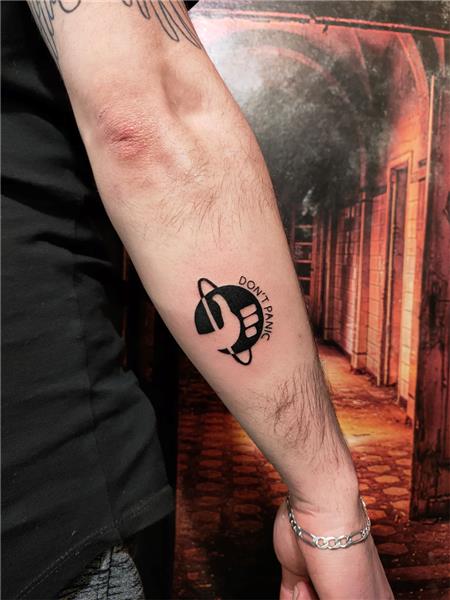 Otostopçunun Galaksi Rehberi Dövmesi, The Guide of Galaxy Hitchhiker Symbol Tattoo, Don't Panic Tattoo, Don't Panic Dövmesi, Film Kitap Dövmeleri, Kol Dövmeleri