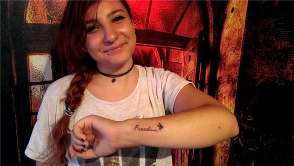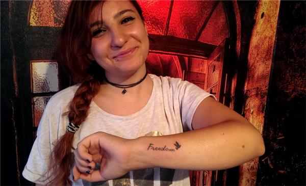 Özgürlük Yazı ve Uçan Kuş Dövmesi / Freedom and Bird Tattoo, Freedom and bird tattoo, Freedom kuş dövmesi, Kol Dövmeleri, Bilek Dövmeleri, Yazı Dövmeleri, Kuş Dövmeleri