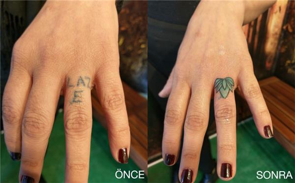 Parmak Üzeri Yazı Lotus Çiçeği Dövmesi ile Kapatma Çalışması / Lotus Cover Up Tattoo