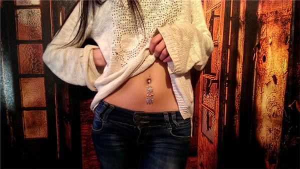 Pembe Rüya Kapanı Düş Kapanı Göbek Piercing / Pink Dreamcatcher Navel Piercing