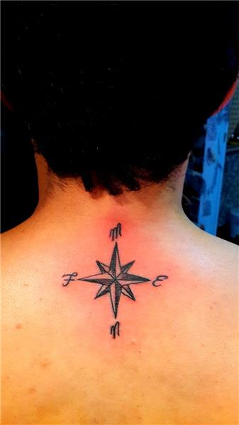 Pusula Dövmesi, Compass Tattoo, Yönler ve İsimlerin Baş Harfleri, Compass Tattoo, Ense Sırt Dövmeleri