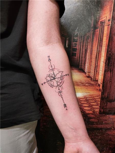 Pusula Dünya Haritası ve Ok Dövmesi / Compass World Map and Arrow Tattoo