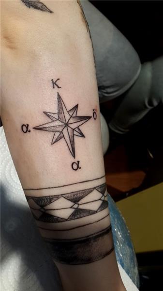 Pusula Yıldız ve Harfler Dövmesi / Compass Star and Letters Tattoo