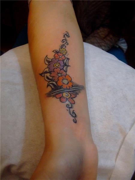 Renkli Çiçek Dövmeleri / Colorful Flower Tattoos,Çiçek Dövmesi, Çiçek demeti salkımı dövmesi