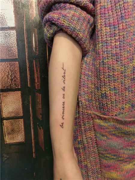 Samimi ol ya da sessiz ol Dövmesi, Be sincere or be silent Tattoo, Kol Dövmeleri, Yazı Dövmeleri, İngilizce Dövmeler, Kol Üzerine be sincere or be silent dövmesi