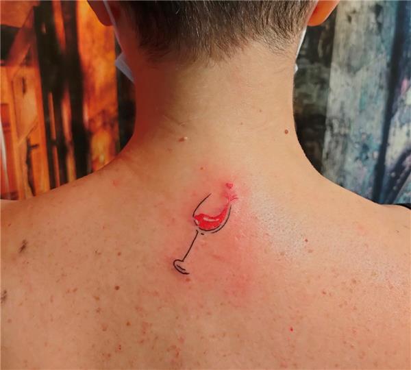 Şarap Kadehi Dövmesi, Wine Glass Tattoo, Sıçrayan Şarap ve Kalp Dövmesi, Enseye Kırmızı Şarap ve Kadeh Dövmesi, Wine Tattoos, Simple Wine Glass Tattoo, Minimal Tattoo, Kırmızı Şarap Dövmesi
