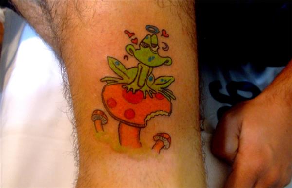Kurbağa Dövmesi, Mantar Dövmesi, Corked Drunk Stoned Frog Tattoo, Mushroom tattoo