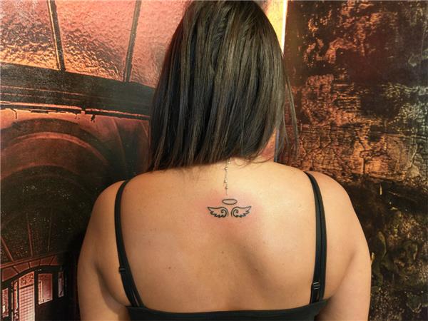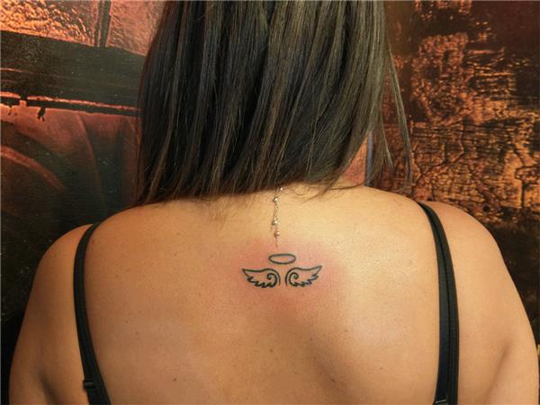 Sembolik Melek Kanadı ve Hare Dövmesi / Angel Wings Halo Tattoo, Melek Dövmeleri, Sırt Dövmeleri, Sırta Kanat Dövmesi, Melek Kanadı Dövmeleri, Çizgisel Sembolik Dövmeler